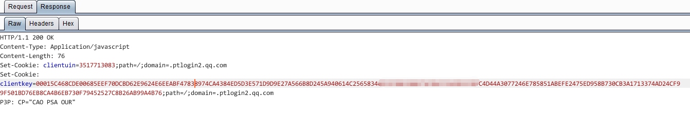 请求响应返回一个clientkey的Set-Cookie字段中的值
