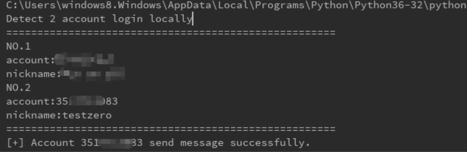 print("account:{}\nnickname:{}".format(account_list[i].get("account"), account_list[i].get("nickname")))