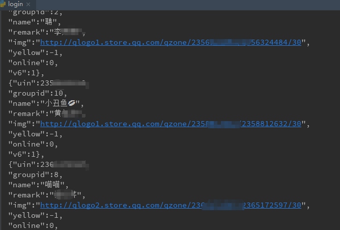 只要脚本运行,在本机上线的QQ都会发一条说说以及被获取到所有好友信息、备注、昵称以及好友分组
