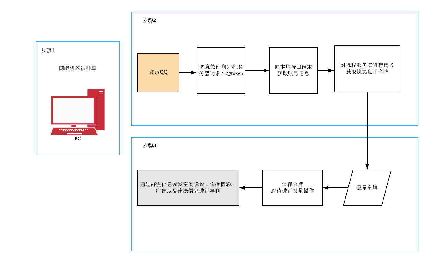 这一些接口其实我们都很熟悉Web页面的快捷登录,这一些操作就是模拟了浏览器或者说软件强制代替你进行了快捷登录。注意是运行在本地上的任何软件都可以做到这个目的。所以账号密码并没有被盗取,而是被一些恶意的软件盗取的登录凭证,代替你发送了垃圾信息。当然我没有讨论如何绕过网吧的还原机制,这又是另一码事了。 一些图谋不轨的人就将这些接口凑起来,写个软件种在网吧等公共上网设施,等待上Q的人帮他进行一些黑产行为,如在QQ群,空间里面发博彩、色情信息以及广告,进行牟利。这些技术并不复杂,很多初中甚至小学文化的“大黑阔”都可以写出来。